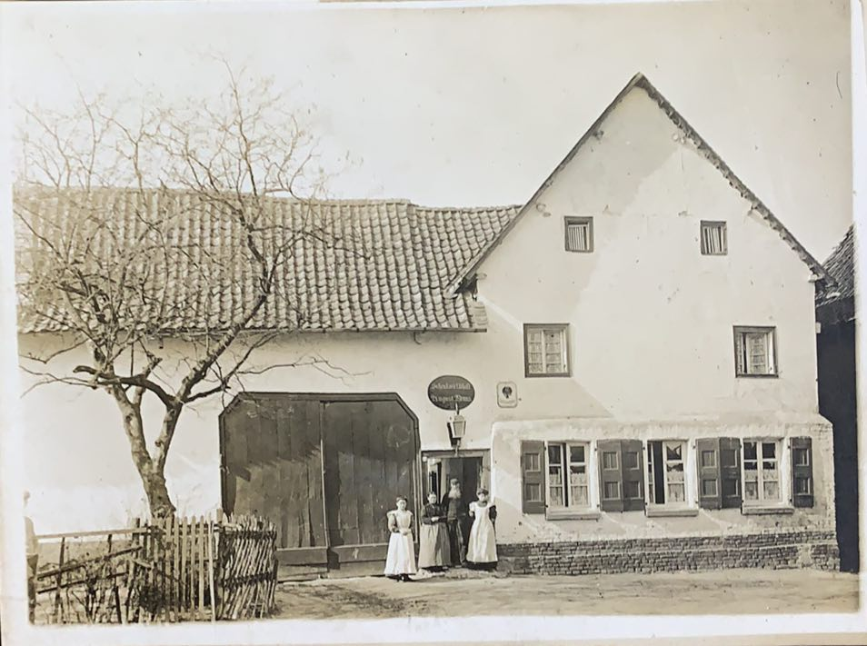 „Wilkum du mein lieber Gast, wan du Gelt im Beutel hast. Hast du Gelt, so setz dich nieder, hast du keins, so geh gleich wieder. 18. April 1777”. Diese, in einen Balken geschnitzte Inschrift zierte einst die Eingangstür. Eine weitere Schnitzerei weist auf den Ursprung des Hauses hin: „Gerades Thomas und Petronella Coenen erbauten dieses Haus zur Ehre Gottes, 4. July 1759”. Es handelte sich um Vorfahren der Familie Bruns, wie die frühere Wirtin, Juliane Bruns (+ 1988) zu berichten wusste.