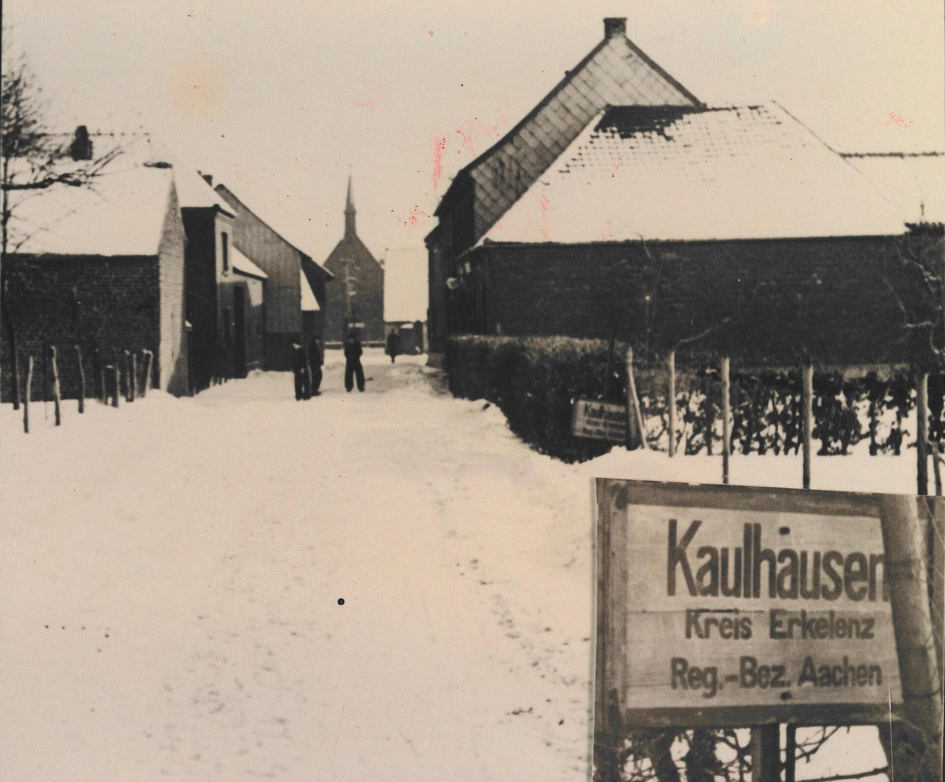 „Seit jeher war Kaulhausen eine kleine Siedlung im vorzeitlichen Waldgebiet abseits von jeder guten Straße. Ein ehemaliger kleiner Bachlauf, vom Wahnenbusch kommend, umfloss unser Dorf in Richtung Unterwestrich zur Niers.“ Zur Einwohnerschaft heißt es: „Es war ein stets genügsames, sparsames und vor allem fleißiges Völkchen.“